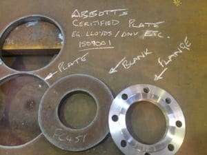 See certified plate profiled cast numbers transferred flange machined and stamped up -From plate to flange All in Abbott & Co ISO9001, PED approved works.
