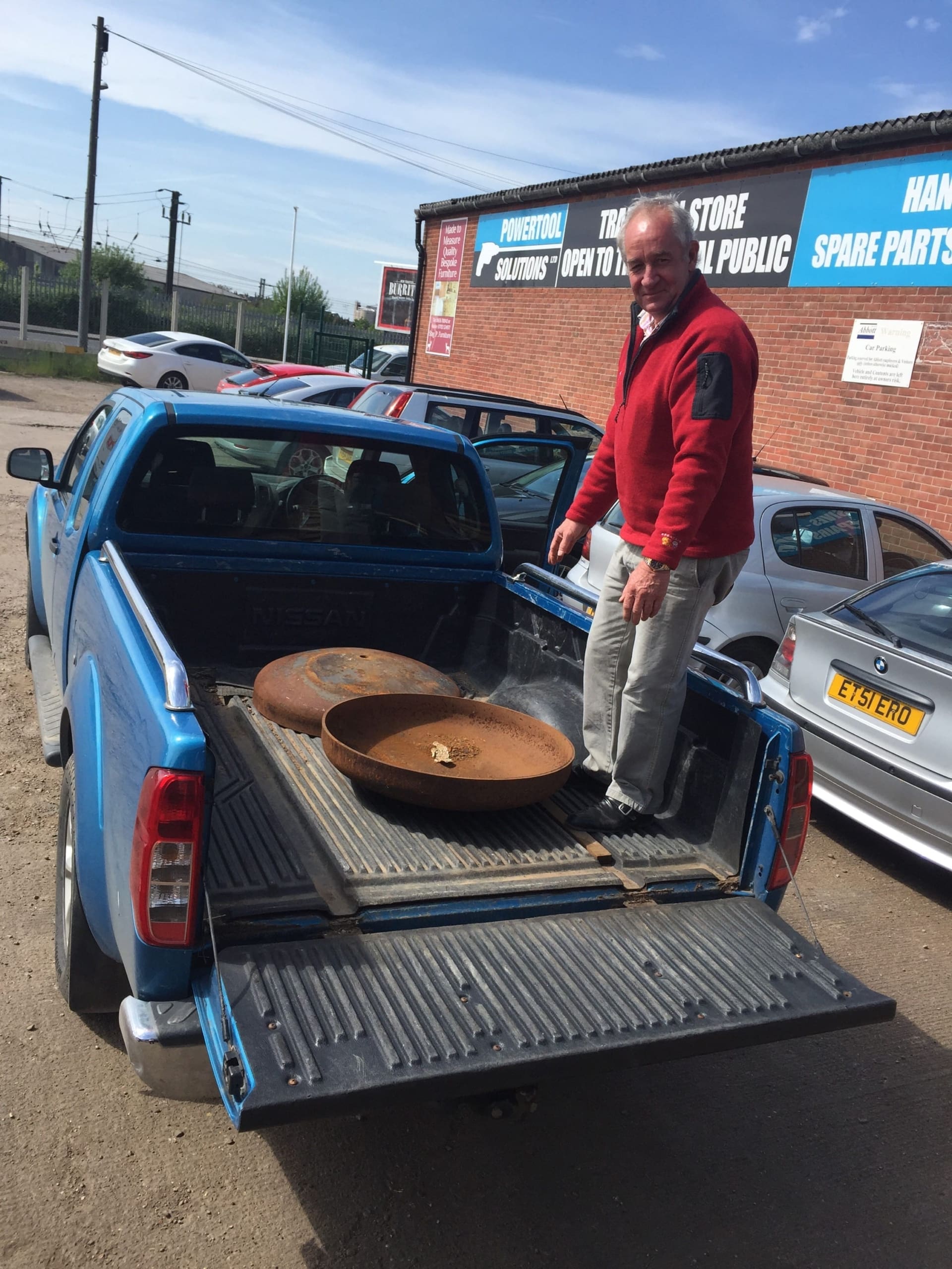 We were delighted to help Tim Turner MD of Blue Deer Ltd as he collects a pair of Dished Ends for some large fire pits.