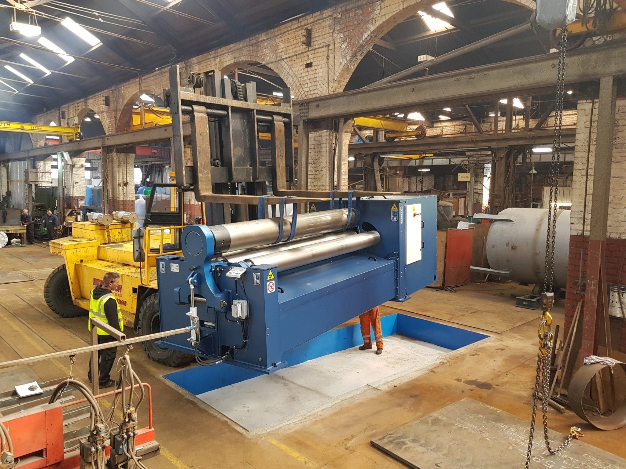 Pressure vessel design codes require a minimum amount of flat on the vertical seams. Being double initial pinch these roles allow us to get that Barry initial bend in the plate leaving little or no flat on the longitudinal seams. EN13445 pressure vessels, ASME air receivers, Lloyd’s class pressure vessels and PD5500 all have slightly different code requirements for this amount of flat.