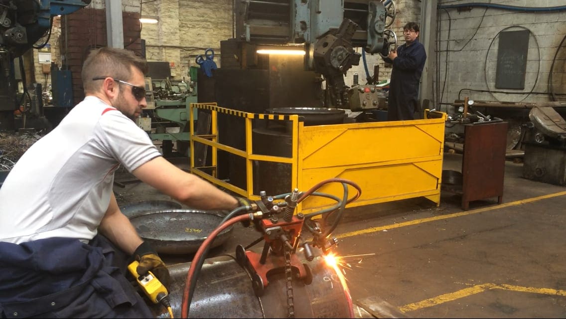For small one off pressure vessel shells cut from seamless pipe we use this manual chain-driven pipe cutting machine – see Jim’s expert operation below: