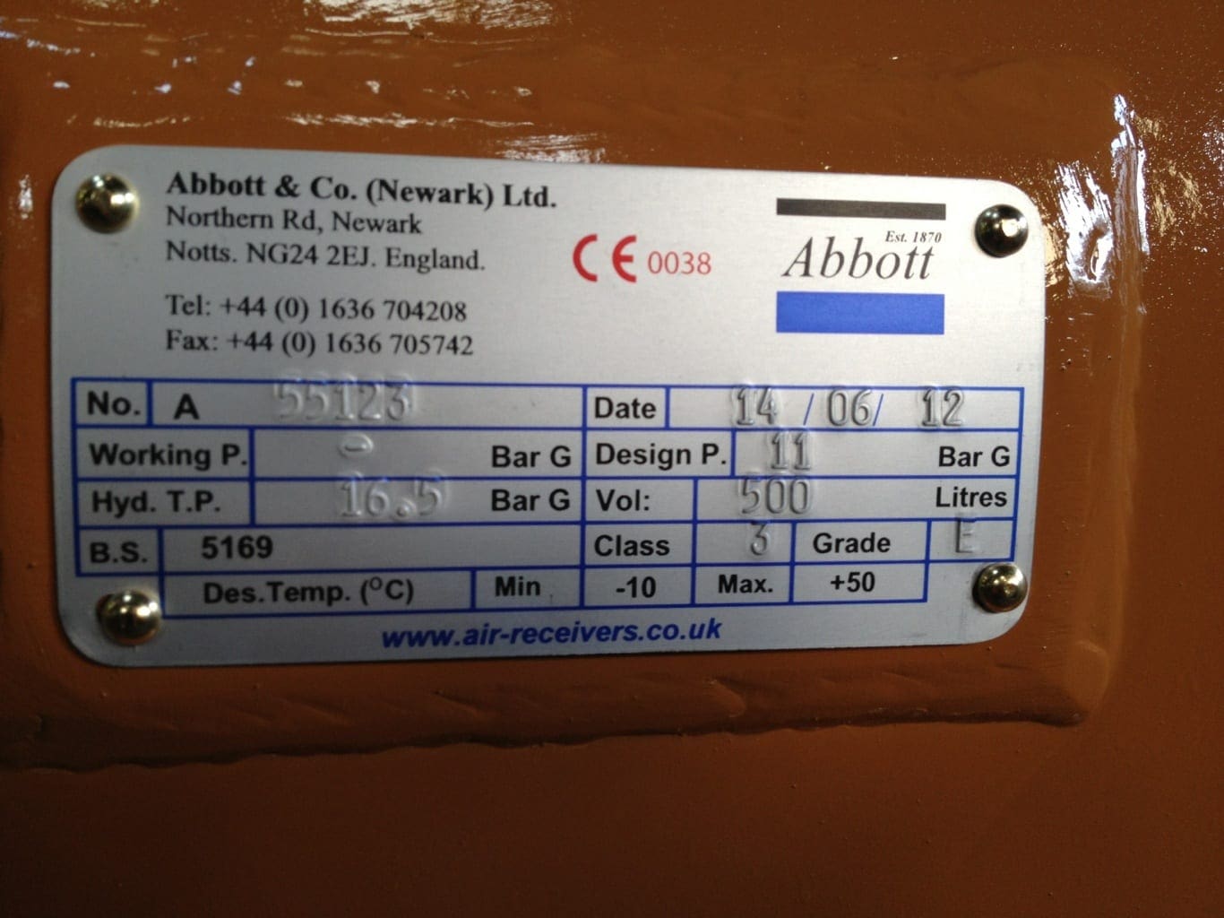Pressure Vessel Nameplate Details on BS5169 Receiver
