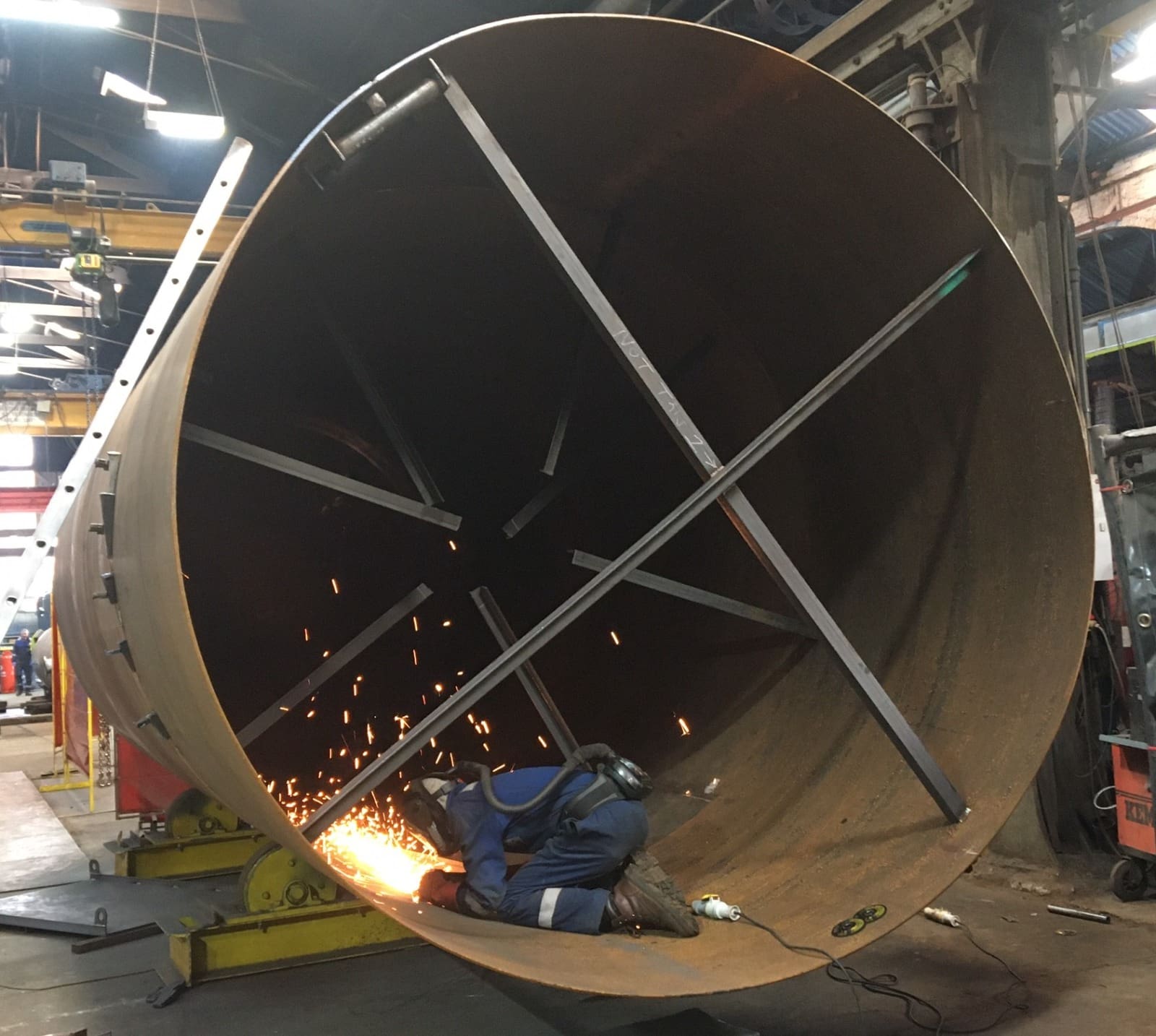 Here is Luke one of our crack welders (Crack as in “elite” – not any other sort of crack) burning the midnight oil and a few welding rods to meet a tight deadlines for a blowdown vessel you know who you are Jay !)